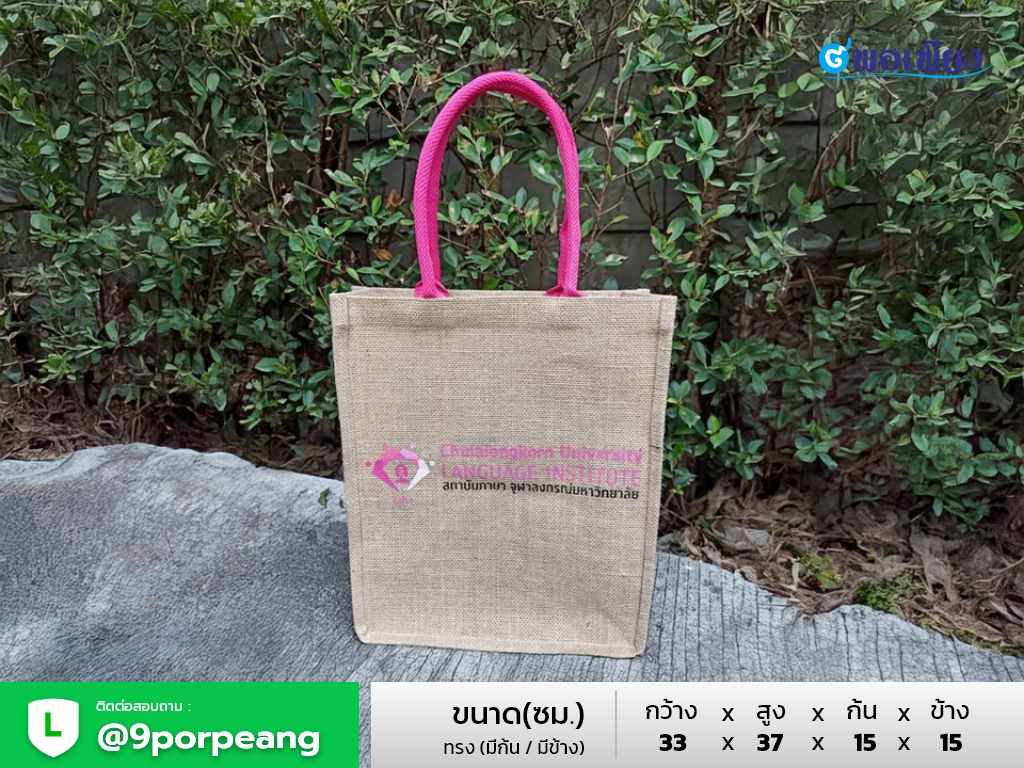 กระเป๋าผ้ากระสอบ (Jute Bag / Hessian Bag) ผลิตจากเส้นใยธรรมชาติที่มีความแข็งแรงสูง เนื้อผ้าดูดีมีสไตล์ ให้ความรู้สึกเป็นงานธรรมชาติ เหมาะสำหรับทำเป็น ของพรีเมี่ยม ของที่ระลึก ของแจกองค์กร หรือใช้งานทั่วไป ด้วยความทนทานและภาพลักษณ์ที่เป็นมิตรต่อสิ่งแวดล้อม จึงได้รับความนิยมในธุรกิจที่ให้ความสำคัญต่อ Sustainability