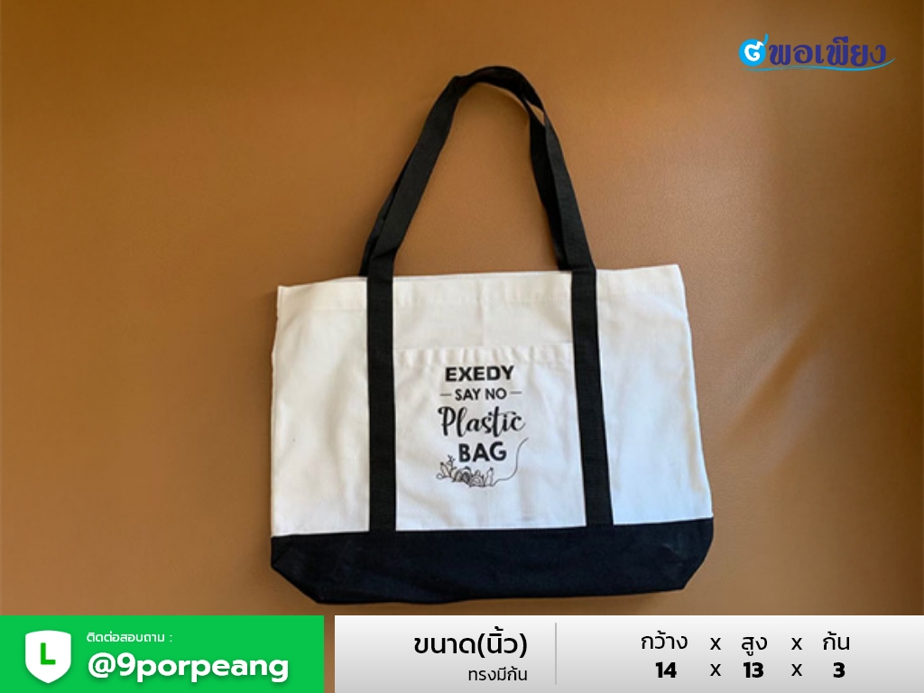 กระเป๋าผ้าแคนวาส ทูโทน สกรีนโลโก้ | โรงงานผลิตกระเป๋าผ้าโดยตรง